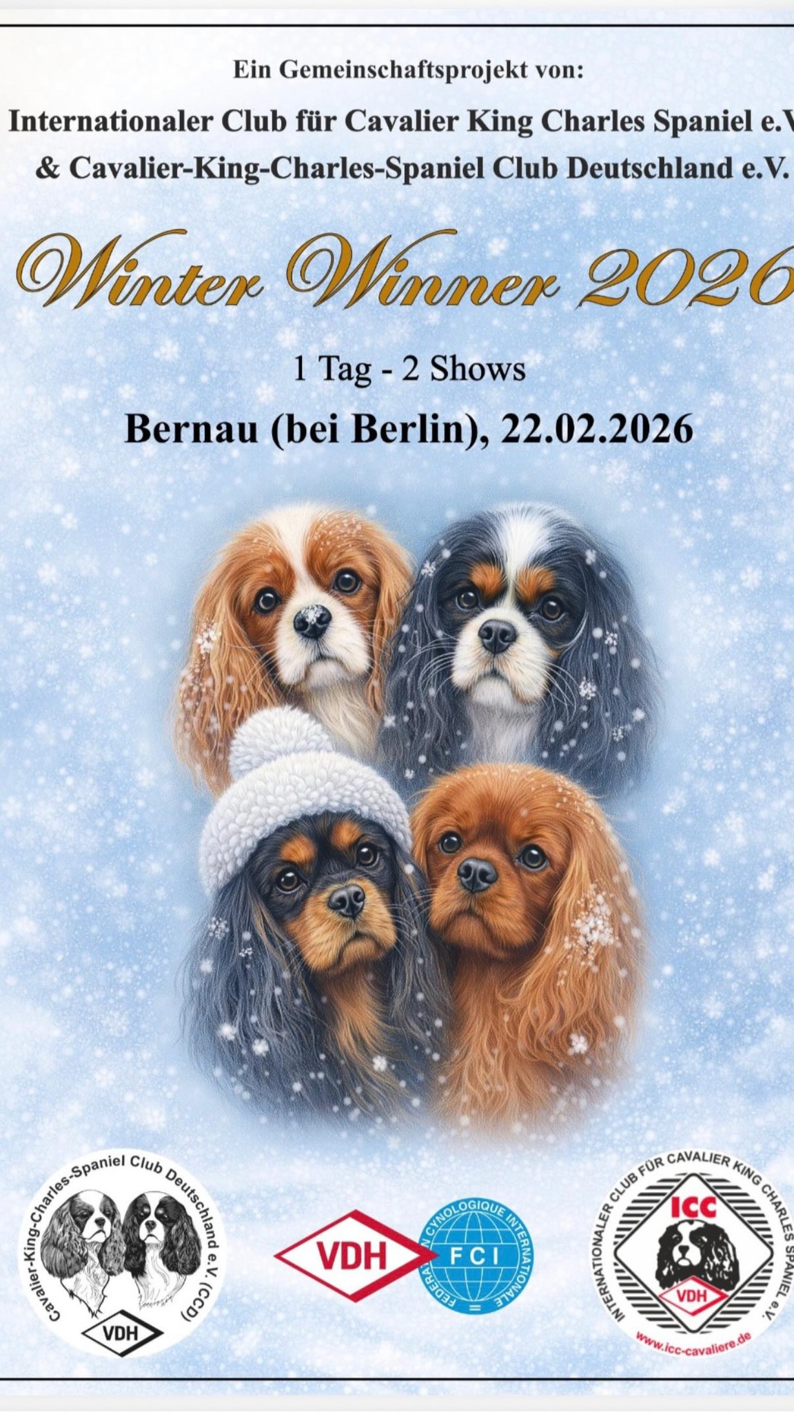 Macht Platz in euren Kalendern! Viel Spaß bei der Anmeldung für die Ausstellungen in Bernau. Denk daran, dass jede Anmeldung hilft, damit wir diese Ausstellungen auch in Zukunft durchführen können. Lg Ihre Cavalier Fans Team! Weiter Infos unter Veranstaltung HIER